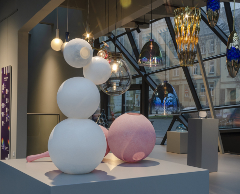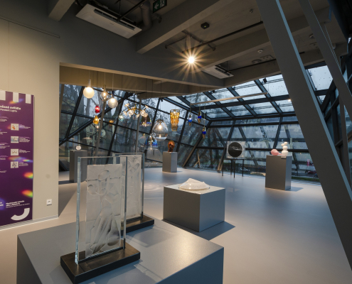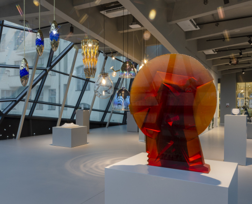 The success of the Czech glassworking industry was always based not just on aesthetic quality, but also on its openness to new stimuli. This is also the basis of the birth of the ambition to create glass artefacts, fine art objects, statues, pictures and spatial installations in the middle of the 20th century. Czech artists, like Stanislav Libenský and Jaroslava Brychtová, René Roubíček, Vladimír Kopecký and Václav Cigler, played a leading role in these efforts, which are a globally respected part of the art scene today. They received international acceptance thanks to their participation in world exhibitions in Brussels, Montreal and Osaka. Excellent glassworking craftsmen, who were capable of converting an abstract vision into a specific material, were an essential element of their success. Thanks to this happy partnership, Czech art glass became a magnet not only for theoreticians, museums, galleries and private collectors worldwide, but also for foreign artists. The frequent lecturer residencies of Czech glass artists at prestigious schools in Europe, the USA and Japan also contributed significantly to the industry’s popularisation.
